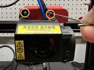 Используя шестигранный ключ на 2 мм, установите крышку вентилятора обратно на экструдер.