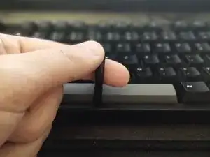Возьмите колпачок пробела и аккуратно нажмите на его основание, пока не услышите отчётливый щелчок.