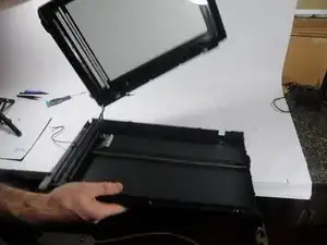 Чтобы снять сканирующую головку, откройте её наполовину и сдвиньте петли, головка будет снята.