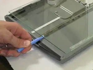 Вставьте пластиковый инструмент под стекло.