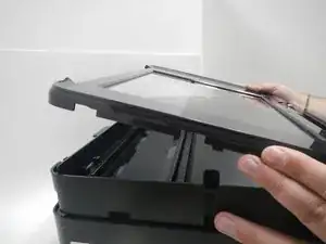 Поднимите стекло сканера и извлеките его из принтера.