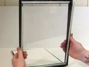 При постоянном давлении на стекло, проведите пальцами вниз по бокам, пока стекло не перестанет крепиться к двустороннему скотчу.