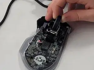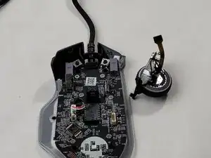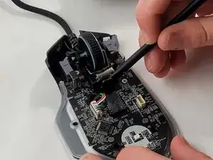 Будьте осторожны при снятии колесика, оно всё ещё подключено к устройству ленточным кабелем. Если тянуть слишком сильно, кабель может порваться.