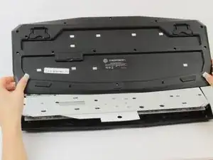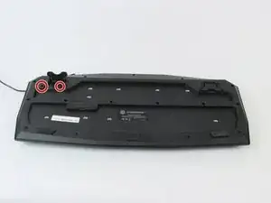 Удалите два винта длиной 10 мм с помощью отвёртки Philips #1, которые находятся под опорой клавиатуры и прямо рядом с ней.