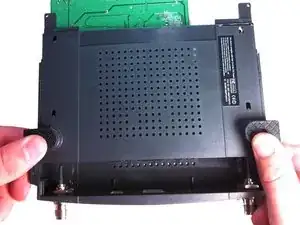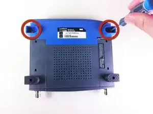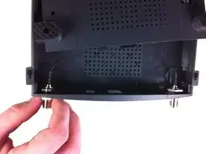 Удалите две черные резиновые ножки устройства с помощью отвертки. Ножки находятся на дне устройства ближе к передней части.
