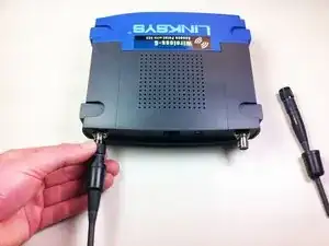 Снимите антенны с задней стороны устройства. Для этого выполните шаги 1 и 2 Руководства по установке антенн: Замена антенн Linksys WAP54g