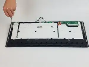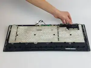Выверните двадцать чёрных винтов Phillips #1 длиной 4,5 мм на задней панели клавиатуры.