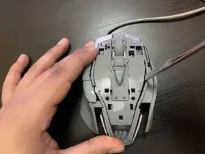 Продвигайтесь вдоль областей левой и правой кнопок, чтобы полностью ослабить и снять корпус мыши.