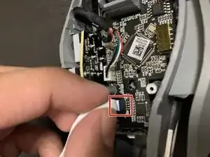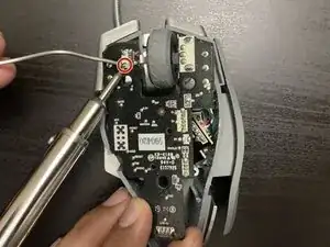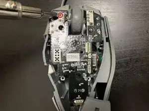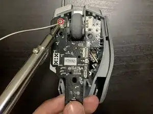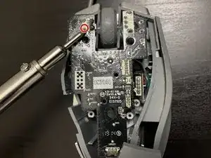 Если переключатель требуется полностью заменить, шаги 8 и 9 включают пайку и демонтаж тактильного переключателя на печатной плате (ПП). Размер переключателя в этой мыши составляет 6,00 мм на 6,00 мм при высоте 5,00 мм (с двумя выводами).