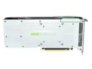 Удалите 14 маленьких винтов, помеченных синим, с помощью отвертки/битой Phillips 0 и удалите два винта, помеченных бордовым, с помощью отвертки/битой Phillips 1. Затем снимите крышку NV-Link, помеченную зеленым, сдвинув её вверх.