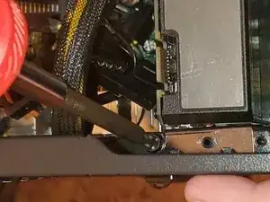 С помощью крестовой отвертки Philips #00 выкрутите два винта, фиксирующие видеокарту.