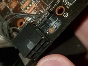 Рядом с местом подключения 6‑пинового разъёма находится разъём вентилятора. Держа кабель вентилятора радиатора за боковые части, аккуратно выньте его из гнезда.