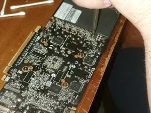 Открутите все винты на обратной стороне видеокарты. Это позволит снять радиатор с видеокарты.