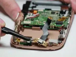 USB-порт на HP Sprocket 2-in-1 — это micro-USB порт. Удаление этого порта потребует работы с множеством маленьких и хрупких ленточных кабелей. Во избежание разрыва соединений с другими важными компонентами избегайте резких движений при выполнении руководства.