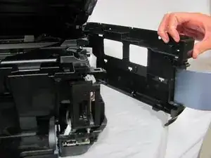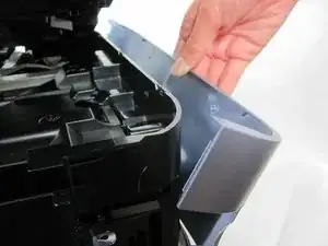 Как только фиксатор освобожден, осторожно поднимите крышку от остальной части устройства, чтобы disengage фиксаторы.