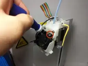 Вентилятор экструзионной головки поддерживает сборку в прохладном состоянии и свободной от мусора для продолжения печати. Перед началом замены вам нужно будет снять пластиковую крышку. Вам понадобится шестигранный ключ и маленькая отвертка с Phillip's головкой. Будьте внимательны при снятии вентилятора, так как это тонкий пластик, который легко ломается.