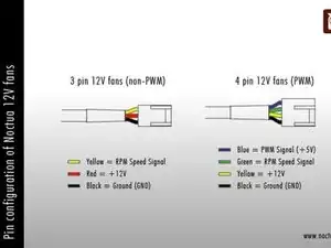 4-пиновый вентилятор: Желтый — 12v, Черный — Земля
