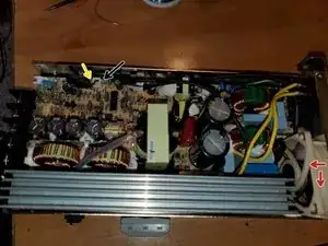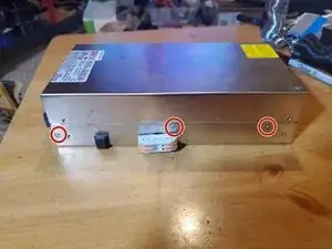 Внутри 8 винтов: по 3 с каждой стороны и 2 сверху. Их нужно удалить, чтобы открыть БП. Один из них находится под желтой наклейкой.