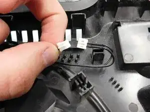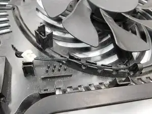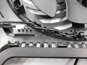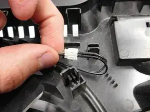 Подключите кабель питания вентилятора и разместите провода обратно в их направляющих.