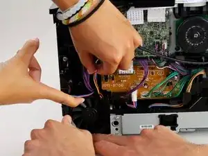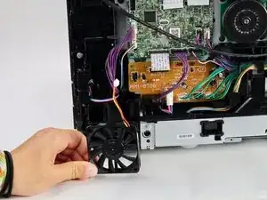 Осторожно вытащите штекер, подающий питание на вентилятор, из разъема на печатной плате.