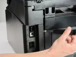 Удалите винт диаметром 8 мм на верхнем крае принтера с помощью отвертки Phillips #2.