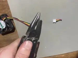Затем отрежьте конец старого вентилятора — я делаю это, чтобы сохранить новый вентилятор в первоначальном состоянии и иметь возможность использовать его в будущем