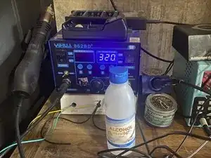 Нагрейте паяльник до подходящей температуры (я использую бессвинцовый припой, поэтому при использовании свинцового можно немного снизить температуру, но лучше использовать бессвинцовый)