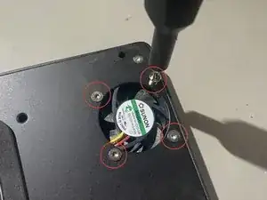 С помощью биты TORX TR10 открутите четыре винта, удерживающие вентилятор