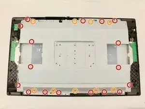 Снимите восемнадцать винтов Phillips #1 длиной 10.2 мм с периметра задней панели, поворачивая отвёртку против часовой стрелки.
