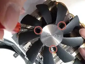 Снимите три винта Phillips 3 мм, крепящие вентиляторы к радиатору, с помощью отвертки Phillips #0.