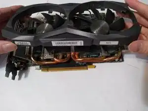Переверните кожух по верхней части видеокарты.