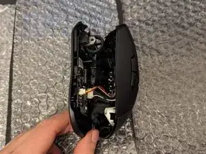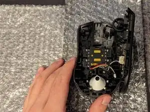Присоедините нижнюю половину мыши к оболочке, убедившись, что все компоненты находятся на своих местах.
