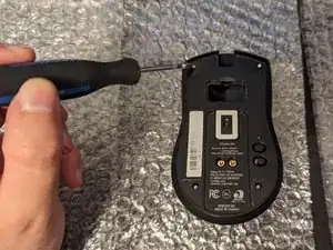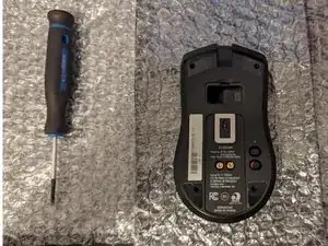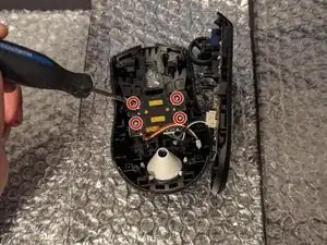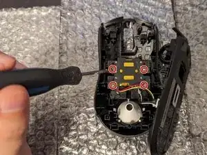 С помощью отвертки с насадкой T5 отверните четыре винта 2 мм на нижней крышке мыши.