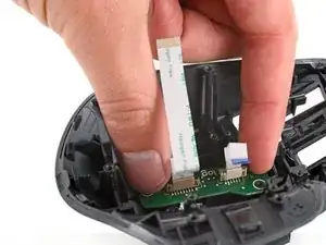 Не пытайтесь полностью снять узел платы кнопки жестов. Он будет снят вместе с узлом горизонтального колеса прокрутки через несколько шагов.