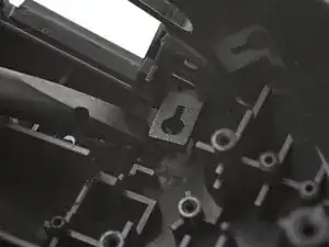 При обратной сборке вставьте индикатор в его слот на ребре корпуса, затем опустите на место так, чтобы отверстие для винта селo на штифт.
