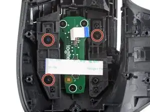 Используйте крестовую отвертку, чтобы удалить три винта длиной 3,1 мм, фиксирующие кнопки левого и правого клика.
