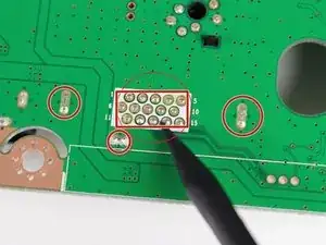Отпайте четыре участка в указанной области на обратной стороне материнской платы с помощью паяльника и оплетки для удаления припоя.