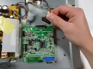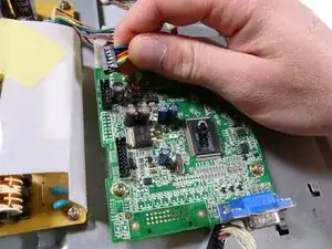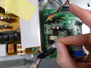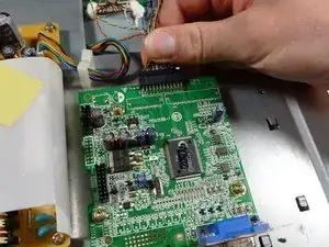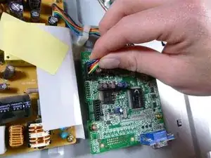 Снимите бежевый кабель управления слева от VGA-входа, потянув его вверх.