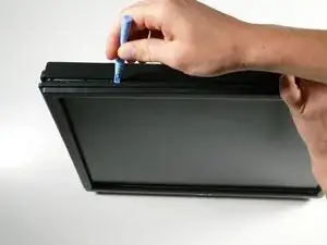 Начиная с угла монитора, вклиньте небольшой пластиковый инструмент для раскрытия между задней крышкой и рамкой дисплея.