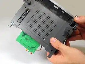 После удаления лицевой панели устройства сдвиньте основание устройства, чтобы открыть доступ к материнской плате и другим внутренним компонентам.