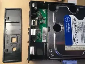 после снятия задней панели вы сможете вытолкнуть внутреннюю раму, удерживающую жесткий диск, из металлического корпуса