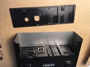 сзади на панели есть 2 маленьких отверстия (с разъемами USB и питания, в верхней части изображения), где можно использовать плоскую отвертку, чтобы немного приподнять панель
