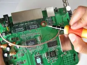 Удаление задней панели маршрутизатора аналогично удалению материнской платы, так как две части соединены друг с другом.
