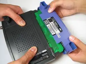 Сожмите боковые стороны задней панели маршрутизатора внутрь и снимите фиолетовую переднюю панель. Будет полезно, если вам поможет второй человек для этого шага.
