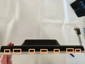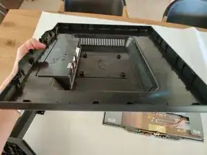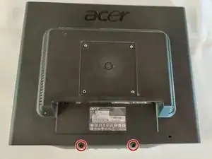 Удалите 2 винта Philips #1 длиной 9,8 мм, крепящих заднюю панель к монитору.
