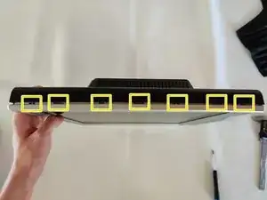 Обходите монитор, вставляя плоскую отвертку в зазор между передней и задней панелями и поддевая вверх.