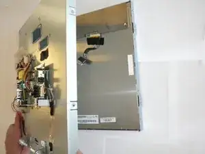 Отключите многоконтактный разъём на задней крышке LCD, крепко потянув его вниз.