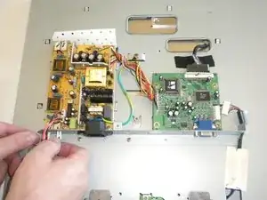 Отключите два разъёма в самом низу платы питания (розовый провод).