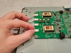Аккуратно разъедините платы блока питания и отображения видео в месте соединения разъёма.