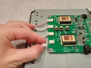 Отключите 4 провода подсветки от их разъёмов на плате блока питания.